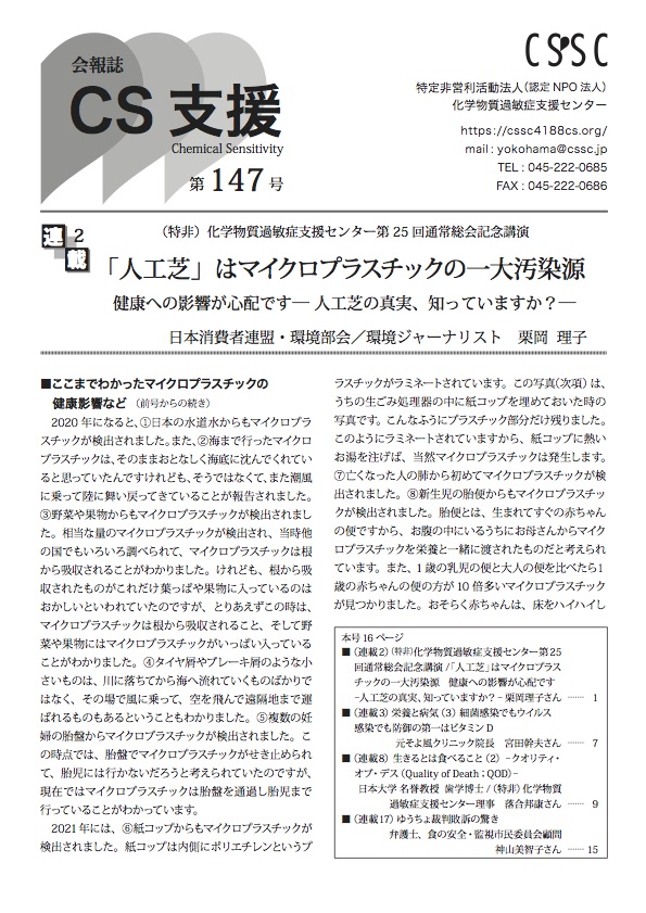 認定NPO法人化学物質過敏症支援センターは(CS支援センター)は、化学物質過敏症の患者や家族、活動団体などを支援し、人々が安全に安心して生活できる環境の確保や改善、今後このような患者が増加しないためのさまざまな活動を行うことを目的として2000年に特定非営利活動法人を設立し、2015年より認定特定非営利活動法人として認定されました。
