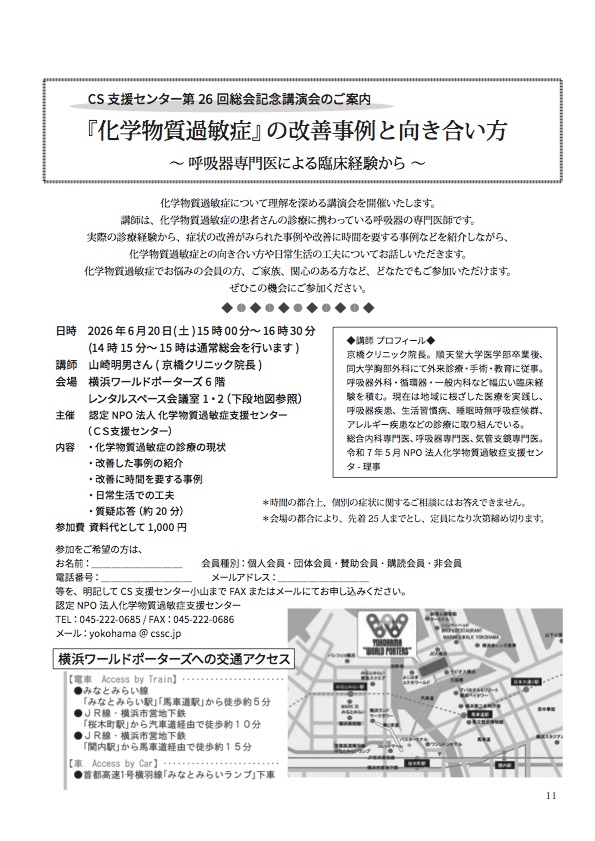 2026.6.20(土) CS支援センター第26回総会記念講演会開催のお知らせ